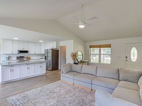 Beautifully renovated, move-in ready ranch on 1 acre lot with NO HOA & no city taxes! Open concept floor plan, vaulted ceilings & bay window allow for abundant natural sunlight in the living & kitchen space. Brand new HVAC gas-pack March 2023! Plus updates galore in '22 include: new water heater, Luxury Vinyl Plank flooring through the entire home, fresh paint, modernized baseboards, & LED lighting. Fully remodeled kitchen in '22 with all new farmhouse sink, abundant cabinetry, granite countertops, stainless steel appliances & huge central island with even more storage. Spacious master suite has tray ceiling, walk-in closet & private bath with dual vanity. Oversized bonus room with built-in bookshelves & direct access to back deck. Fenced backyard with firepit & large deck are perfect for entertaining & relaxing, or enjoy the rocking chair front porch & porch swing! Quiet country feel, yet only 10 minutes to all the buzz in downtown Wake Forest. Fridge, washer & dryer will convey!