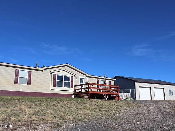 Move In ready! Private and Secluded country property with spectacular views of Big, Wonderful Wyoming. This 2009 3 bedroom, 2 bath manufactured home was specialty built with THE ARCTIC PACKAGE which includes R-60 rated insulated walls, R-80 insulated attic, high quality large double pane windows and quality construction throughout. The home features cement exterior siding, 50 year shingles, vaulted ceilings, skylights, well designed kitchen with appliances, spacious dining area, master suite with full bath, fireplace, quality wood stove, new laminate flooring, on-demand hot water, reverse osmosis water filter system, forced air electric heat and central air, sliding glass doors on to handicapped accessible deck.