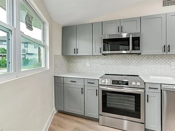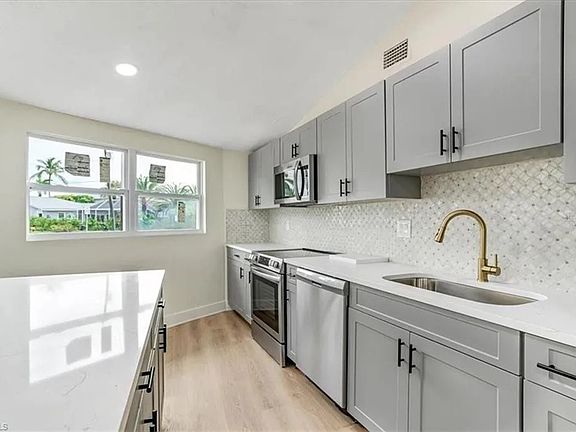 Best priced livable waterfront home on the island! Discover this beautifully renovated 2-bed, 1-bath gem in Laguna Shores, on Estero Island. With a 2021 roof, 2022 HVAC, and new impact windows this home offers worry-free living. Enjoy the serenity of waterfront living with direct access to Estero Bay and Lovers Key State Park. The house has been entirely updated, featuring stunning new gray shaker cabinets, quartz counters, stainless steel appliances, and intricate backsplash. Relax in your modern gold trimmed bathroom oasis. The interior boasts luxury waterproof plank flooring with a lifetime warranty, fresh paint and new doors throughout. Step outside to find new sod, a new irrigation system, enhancing both the beauty and functionality of the home. The exterior shines with new stucco, adding to its fresh, modern appeal. For boating enthusiasts, the property is dock-ready with completed Boundary, Bathymetric, and Riparian surveys. This is a rare opportunity to own a turnkey waterfront home in a prime location. This is a Great home for personal use, investment, or a combination of the two! Surrounded by multi-million dollar homes you can enjoy the Southern part of the Island with quick access to Bonita Springs and Naples. Dont miss out!