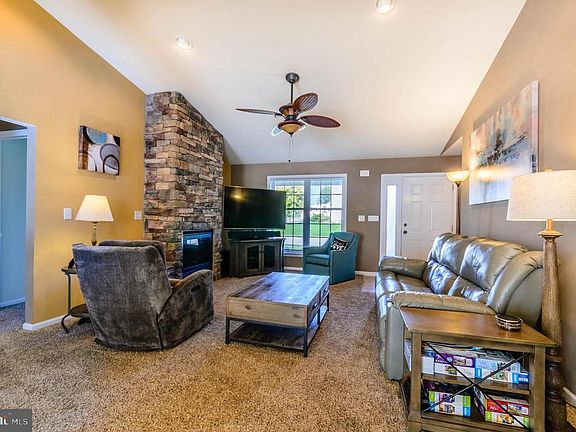 Beautiful stone front rancher boasts open floor plan, cathedral ceilings and stone fireplace! This exceptional home offers sizable 2 car attached garage, as well as, an amazingly huge 3rd car attached garage...31 ft deep! Large master w/ spacious full bath! Location is premier offering large common space and a backdrop of trees offering privacy to the attractive vinyl fenced backyard! New sliding glass door in 2018 leads to back deck! New dishwasher in 2018! Beautiful 2 level deck added 2021. Top deck 14×12, Lower level 14×18. Don't miss out on this one!