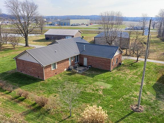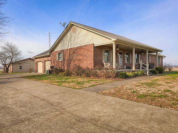 Located in Hancock County, just across the Daviess County line. Lovely three bedroom, two bath brick home with metal roof. Vaulted ceiling in the combined family room and dining area. Owner's suite with tub/shower and dual vanities. Separate laundry room with an additional shower and sink. Concrete driveway. Two car attached garage. 30' x 40' shop with electricity and a 10' x 40' lean-to.