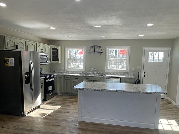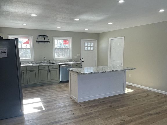 New Build. This charming open floor plan home is filled with beautiful natural light from the picture in the living room. The kitchen features a glass front cabinet, built in microwave, new appliances, and a spacious island with seating and storage. Home sits on a large lot and includes 3 bedrooms, 1 full bath, built in shelving for additional storage, and an attached garage with laundry area.