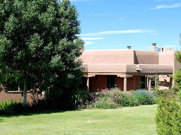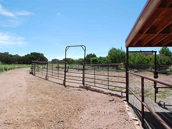 FABULOUS HORSE PROPERTY. Stunningly beautiful Tierra De Zia custom-built home in highly desirable Los Vaqueros private subdivision: three bedrooms, plus large private home office or art studio with separate entry, magnificent master suite with jetted tub and over-sized walk-in shower, 3 lovely kiva fireplaces, gorgeous vigas, splendid cabinetry, 3 wonderfully conceived outdoor living areas with amazing views, walled courtyard, fully landscaped with extensive drip systems, gardens, orchard, Koi pond with waterfall, sprinklered lawn, custom horse barn, two sets of corrals, tack room, large insulated workshop perfect for studio, multi-car garage bays with overhead doors and height to accommodate an RV, all on almost 12 acres within 5 minutes of shopping and banking and 15 minutes of Santa Fe's full range of amenities. This is one of the most beautifully and artistically appointed homes we've seen. The home is light and bright: a wonderful home for the artist and horse lover. The barn exterior wall construction was purpose-built to allow for a separate guest house conversion. Covenants allow for additional buildings on the property. Be sure to ask about Los Vaqueros' water; it's incredibly inexpensive! As always, be sure to verify the material details for yourself. Call for a private showing today! (IBN)