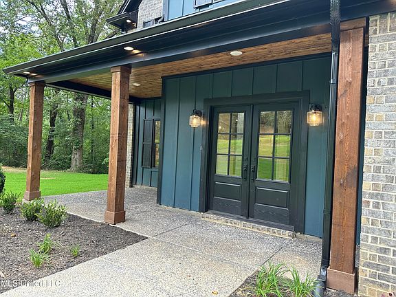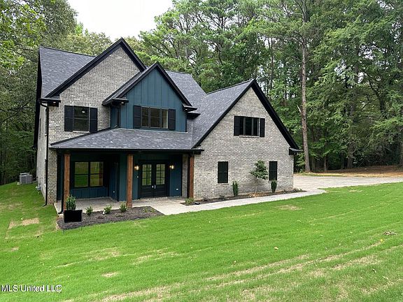 This beautiful home sits on 1.78 wooded acre lot just South of the Hernando city limits (no city taxes) and has NO HOA or restrictive covenants. The black limestone concrete driveway leading to the oversized double garage with a side entry looks amazing. The home has 5 bedrooms, 3.5 baths, an open kitchen & living area with high ceilings and beautiful lighting. When you enter through the front door, you'll find a gorgeous curved stairway with custom iron railing leading upstairs to the balcony that overlooks the large windows in the living area. There are brick pavers on the entryway floor from the garage through the laundry room and into the half bath for guests. The kitchen features custom cabinets with glass doors up top, a commercial grade 48'' natural gas cooktop/oven, large island, and double pantries. The owner's bathroom features double sinks, a free standing tub, a walk-through shower, beautiful tile flooring, and a huge closet with custom shelving. There is a second bedroom downstairs that is separated from the owner's bedroom. Upstairs there's an additional 3 bedrooms, 2 full baths, and a huge media room painted completely black, perfect for watching movies. In the media room there is a wet bar area with cabinets, a bar sink, a beverage fridge, and a wine fridge. In the backyard, there is a covered porch with a stained wood ceiling, 2 ceiling fans, and concrete patio with a fire pit area for entertaining. There are Aria flush wall vent covers all throughout the home for a sleek, clean look and custom wood shelving in all the closets, the 2 pantries, and built-ins by the fireplace. Schedule your private showing ASAP!