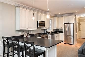 A great opportunity to live in close proximity to all that Southie has to offer and still have an off-street parking spot! This unit features a chef's kitchen with black granite counter tops and a breakfast bar, designated dining area, open floor plan, living room with a gas fireplace, master bedroom with en suite bathroom accompanied by a spacious double vanity, queen size guest room, and in-unit laundry. This newly renovated unit has beautiful hardwood floors throughout, crown molding, wainscoting and custom plantation shutters. Enjoy entering with the Sonos surround sound and private back deck piped with gas. One Off-Street Parking Spot Pets Negotiable Available June 1st Tenant To Pay Full Fee