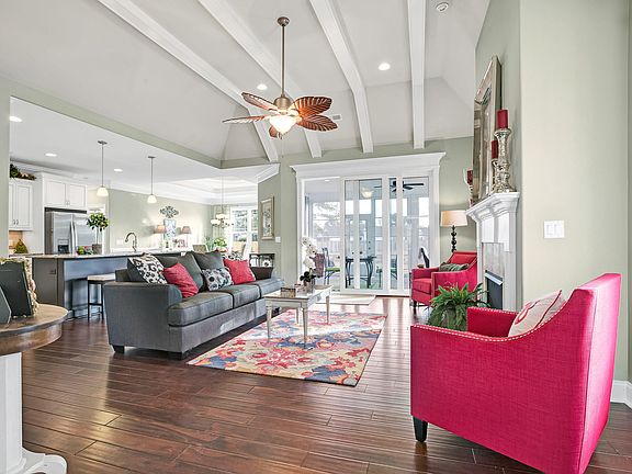 This magnificent home is jaw dropping from the moment you enter. The Bluffs Stratton offers 4BR/3BA, bonus room, and 3098 sqft all nestle on a premium lot with unobstructed pond views. Impressive kitchen features a huge island, granite counters, glazed cabinets, SS appliances, and opens to spacious living room highlighted with beautiful beamed ceiling & gas FP. Rich wood floors, heavy custom trim, numerous windows, full view glass doors, & double trey ceiling enhance the captivating appeal of this home. The welcoming wrap-around porch & delightful EZ Breeze porch provide comfortable outdoor living & gorgeous views. The 1st floor master suite is a tranquil retreat boasting a spa like bath with oversized tiled shower, dual vanities & 2 walk-in closets. Upstairs is the 4th BR, full bath, lots