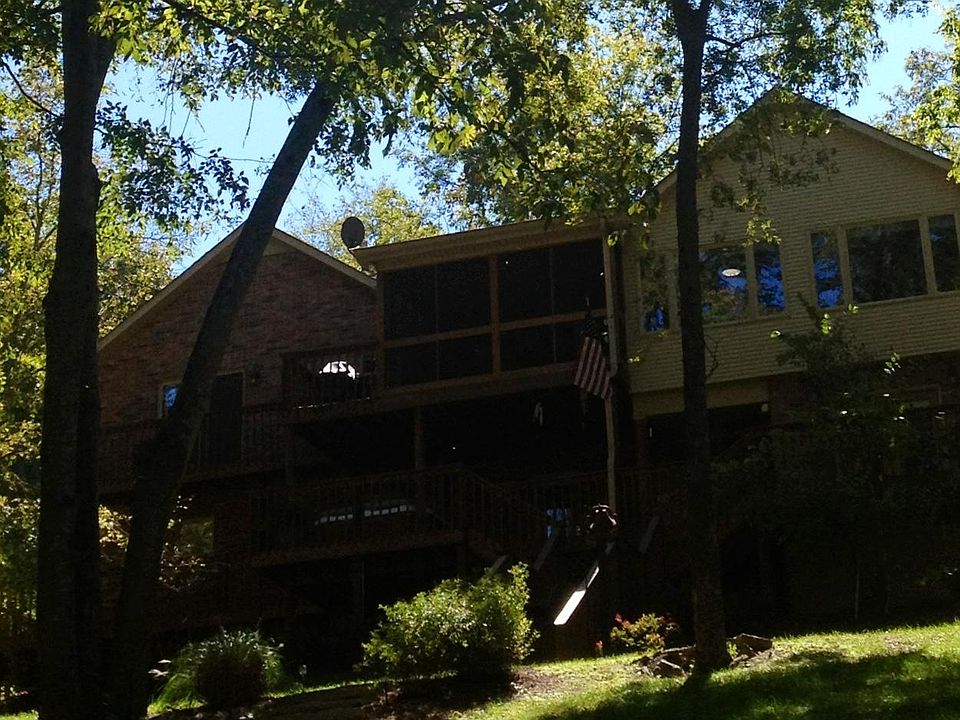 Rent fully furnished, for 6 months or more (less than 6 months will be considered). Lakefront home located on a peninsula with boat dock and firepit. Home has up and lower decks that extend across the back with screened-in porch up and covered porch with hot tub on the lower deck; includes outdoor furniture and swing to enjoy this beautiful property. Inside is a fully stocked spacious kitchen/dining with large picture windows. All bedrooms are on the main floor; large master w/bath and 3 additional bedrooms, full hall bath, living room w/fireplace. Located downstairs is a huge media room with projection 80" large screen TV, wet bar (includes fridge, stovetop, and microwave), big laundry room with ink/cabinets and half bath. Please inquire about dogs. Tenant is responsible for utilities, cable and lawn care.