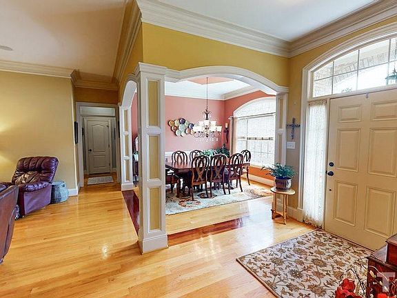 OVER 4000 SF ALL BRICK Luxury Home in Lake Community w/ Walking Trails* Perfect Floor Plan Offers Downstairs a Lush Master Suite & Custom SPA Bath & Walk-in Closet + 2 secondary bedrooms + full bath-Chef's Kitchen with Gas Cook Top,Wall Oven, Pot Filler& Lots of REAL Wood Floors~Inviting Foyer to Huge Family Room~Upstairs Features another Bedroom + Full Bath,2 LG Bonus Rooms& Walk-in Attic Storage! Enough Space for Everyone! Screened porch & Deck overlooking nice BackYard! Irrigation system-conven to I-40