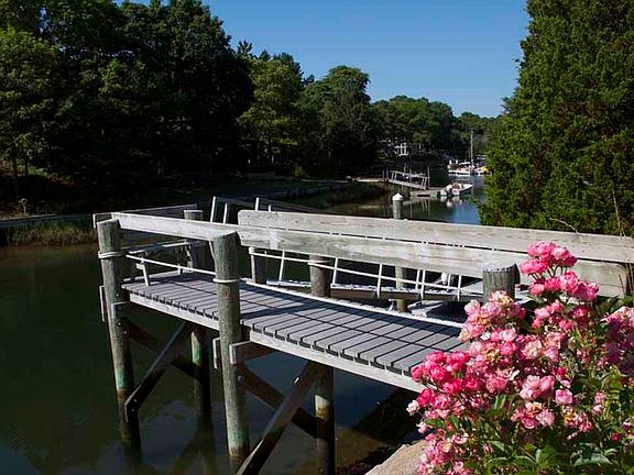 This alluring New Seabury waterfront home with deep water dock is minutes to the open ocean. Three floors of living space include a state-of-the-art chef's kitchen, beautiful floor to ceiling built-ins, crown molding, a river stone fireplace with raised hearth, and marbled bathrooms. Water views are to be enjoyed from all rooms and a full walkout finished basement complete this offering.