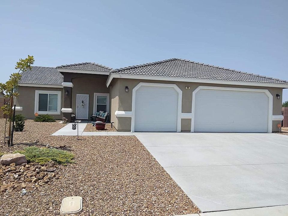 Beautiful, highly upgraded 2 year old home in desirable Cottage Grove Estates with 9' ceilings and 8' sliding patio door. Ceiling fans in all the room. Kitchen has Quartz countertops, soft close espresso quaker cabinets, black appliances, including microwave and built in refrigerator with water and ice dispensed thru door, 18" pantry cabinet and under counter mounted sink, 6" backsplash. Carpet in all bedrooms... Waterproof man made laminate wood flooring through out the rest of the home. Bathrooms have the espresso quaker cabinets, Quartz countertops, and backsplash. Single tone paint throughout. Windows are upgraded case and jamb. Blinds throughout the whole house. Enjoy a shaded back patio . Mountain views throughout with beautiful fireworks view for the 4th of July. RV Parking and hook up. Solar Lease. Close to shopping, medical, restaurants. The home is like new and will go quickly! Patio furniture, outdoor tv, gazebo, washer, and dryer are all negotiable. Just ask!--