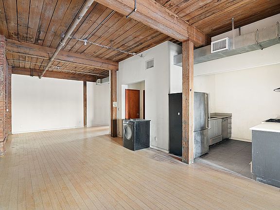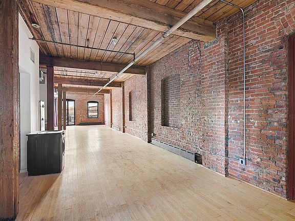 Bring your architect! Authentic historical Greenpoint loft loaded with architectural details and unending potential ready for your personal vision: 11 foot wood ceilings, original exposed wood beams, original exposed brick and a flexible layout offering a variety of potential uses to fit your needs. The spectacular blank canvas is in a former button factory and is well situated with direct East River exposure. The open plan layout has direct views of the Manhattan skyline. The 60' long living space features an open dining room/living area and separate kitchen.