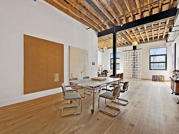 Authentic Greenpoint loft loaded with architectural details: 16-foot ceilings, exposed wood beams, 9-inch wide white oak flooring, massive windows and steel columns. At approximately 1,364 square feet, this open plan layout has 40 feet of frontage facing West Street with unobstructed views of the Manhattan skyline. The sun-drenched 42-foot long living space features a dining area and a separate chef's kitchen with stainless steel appliances, custom hand-made wood cabinetry, reclaimed beech wood shelving and stone flooring. This newly renovated loft's open plan layout can easily be converted into a 2-bedroom apartment. The bedroom features Empire State Building views, and the large bathroom includes ceramic tile, deep soaking tub and a sleek wall-mounted porcelain sink. Amenities include central air, utility closet with washer/dryer hookups, storage closet, common roof deck and extra storage available in the basement. West Greenpoint Lofts is a boutique loft conversion on the Greenpoint waterfront with just 10 apartments, a J51 tax abatement and low common charges. The ferry is located two blocks away and private deeded parking can be purchased separately.First Open House: Sunday, September 7th - 2:00-4:00PM