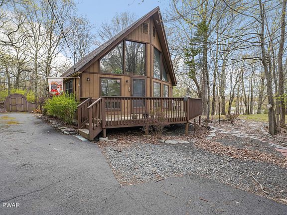 Discover a hidden gem in the heart of the Poconos! Nestled within a private, gated community, this charming 3 bedroom, 1 bathroom Chalet is the perfect place to call your own. This picturesque property sits on .45 acres and backs up to a 1200-acre parcel. Warm & inviting, the cozy family room features a wood-burning fireplace, cathedral ceilings, exposed beams, & gorgeous flooring. Two bedrooms, a full bathroom, an open kitchen, dining, & living room plus laundry complete your fabulous first floor. Upstairs, a private retreat for a primary bedroom, guest room, office, or recreation room with views of treetops & nature. Newer roof! A lovely front deck, shed, & free 1 year home warranty for the buyer! Relax and adventure in your own private oasis where nature meets modern convenience., Beds Description: Primary1st, Beds Description: 1 BED 2nd, Beds Description: 2+Bed1st, Baths: 1 Bath Level 1