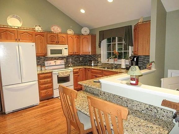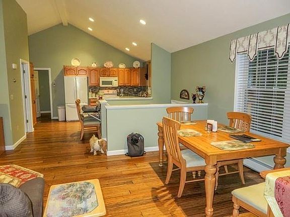 This lovingly maintained home features custom blinds and window treatments, first floor Master en suite, vaulted ceilings and an impressive and desirable open layout. Handscraped hardwood flooring throughout the master, living, dining and kitchen areas of which all flow together in seamless unity. Spacious cabinet packed kitchen offers granite counters, gleaming white appliances (please bring your own refrigerator), a pantry cabinet and bonus granite counter for desk work or additional seating. Convenient half bath located on this level as well. The finished basement features a bedroom, full hall bath, an additional private room with closet, the laundry area, and a pellet stove. This neighborhood home is across the street from the town's recreational East Millbury Park and is located on the public transportation bus line scant minutes away from the Mass Pike, Rt. 20 and Grafton MBTA Commuter rail. Please see attached list of extensive 2001 renovations and improvements to date.