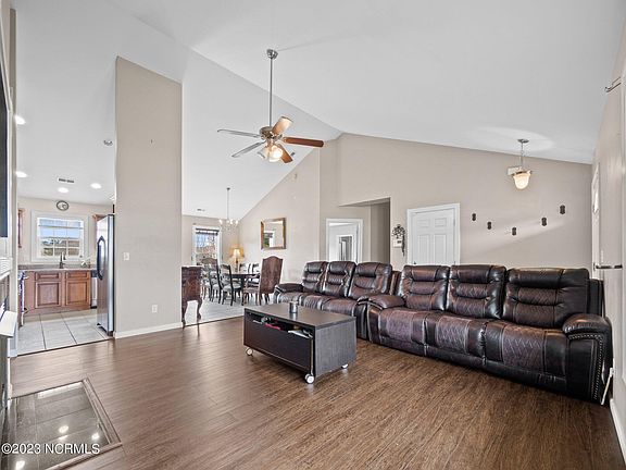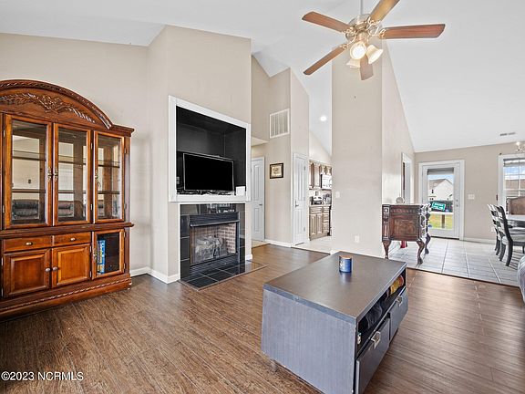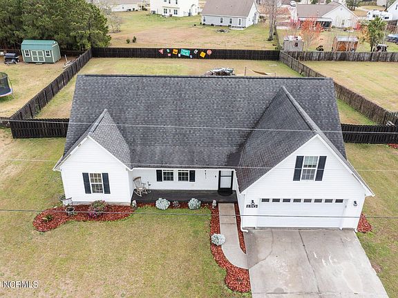 3BR/2BA with Bonus Room situated on a nice .46 Acre Lot on a peaceful dead end street. Ample space in the fenced rear yard for the kiddos and pooch to play. Hang out with friends around the Fire Pit with custom made seating and side tables. *** Spacious 1700 sqft floor plan offers Vaulted Ceilings, Fireplace with gas logs, Luxury Vinyl Plank Flooring in Living Room. Kitchen and Dining have Tile Floors, Granite Countertops, Stainless Steel Appliances and Pantry. Master Suite features Trey Ceiling, LVP Flooring, Walk-In Closet, Stand-up Shower, Jetted Tub and Double Sink Vanity. Laundry Closet and 2 additional Guest Bedrooms on main level. Upstairs you will find a Bonus Room WITH a Closet. Double Car Garage has built in shelving and work bench. *** CONVENIENTLY LOCATED within 15 minutes to Surf City and North Topsail BEACHES, Stone Bay, Dining, Grocery, Bars and Pubs. 20 minutes to the South Gate for Camp Lejeune. Less than 30 miles to Mayfaire Shopping Center in Wilmington or Live Music venues in Jacksonville. Within Walking Distance inside subdivision Kings Harbor Boat Dock and Ramp off Spicer Bay or just around the corner is Morris Landing Public Fishing Dock and Kayak Launch. *** Home is located OUTSIDE CITY LIMITS and is ELIGIBLE for VA or USDA financing with NO DOWN PAYMENT. *** Seller is offering a 1-Year HOME WARRANTY COVERAGE to include HVAC System, Appliances, Electrical, Plumbing and Septic for Buyer peace of mind!