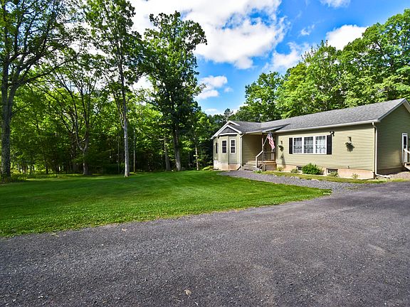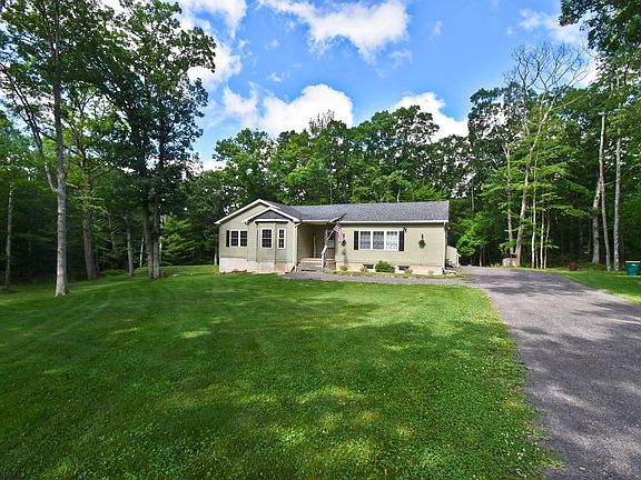 Oversized Ranch Home on 1.55 Acres Just Minutes to MANY Popular Pocono Attractions yet Private enough to Have the Best of Both Worlds. Spacious Rooms, 3 Beds, 2 Full Baths with Center Island Kitchen & Dining Area with Sliders to the Back Decking. Master Bed is Carpeted with Full Bath & Walk In Closet plus Bed #2 & Bed #3 have Laminate Flooring & Walk In Closets. Huge Full Unfinished Basement that could be Finished to Add even MORE Living Space.NEWER HVAC SYSTEM STILL UNDER WARRANTY! Well Maintained Home & Property plus Lower Taxes!