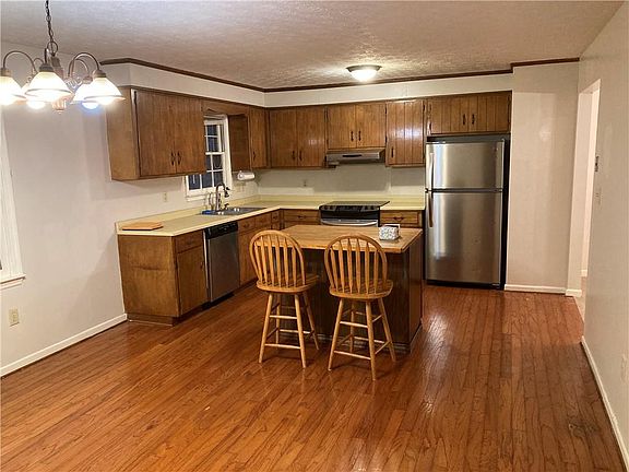 - Kitchen Features: Cabinets Stain, Eat-in Kitchen, Laminate Counters, Kitchen Island