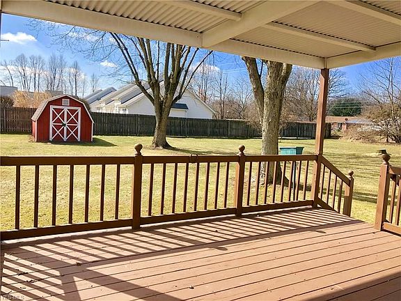 Quality brick & vinyl ranch home with over half acre lot! Pride of ownership here with one floor living and 3 bedrooms. Large kitchen with ceramic tile floor, plenty of dining space and appliances stay. You'll love the park-like backyard with big covered deck and huge storage barn. Partially finished Walk-Out basement with kitchenette, wood burner for heating purpose, half bath, family room, utility room w/shower and lots of storage. Spacious living room and family room on first floor. Updates include; Roof 2008, updated furnace, sliding glass door and more.