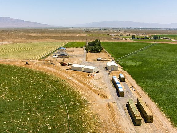 Don't miss out on this exceptional farm! Located just outside Battle Mountain, this 169-acre farm has 3 pivots, a portion under wheel-lines and sprinkler, an approximately 50 head feed lot, several pastures with water, working corrals with loading chute and hydraulic squeeze, paneled fencing, and first-class improvements. To begin, there is a nearly new 2,688 sqft horse barn with 3 stalls and turnouts, automatic waterers, a huge tack room, mezzanine, and living quarters. Beyond the barn, is the main house, which boasts almost 3,000 sqft, an entertainer's kitchen, open concept, multiple built-ins, an enormous office/craft-room, and a mudroom that every farmhouse needs. There is a 3-sided 30'x48' machine and equipment shed, a 30'x40' shop, another 36'x80' building that could be used for hay storage and/or more equipment storage and an older barn with tack room. But that's not all, there is also the manager's home that is a comfortable 1,700 plus sqft. and separate garage. Fields are planted in an alfalfa/grass mix, grass, and grai all are producing wel avg 5 tons to the acre. This property is move-in and production ready.