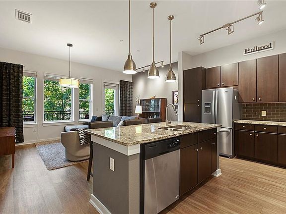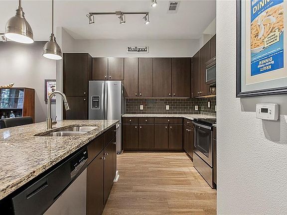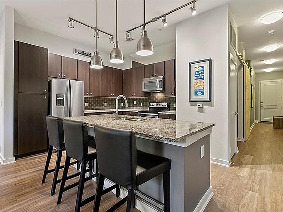 Location! Location! Location! Coveted Zilker Park 1 Bedroom w/ 1 Reserved Garage Parking Spot Included! This modern loft style condo boasts a multitude of custom upgrades including modern lighting, rustic wood accent wall, sliding barn door, custom closet, custom bath tile surround, new full size washer and dryer and upgraded refrigerator. Located on the 2nd floor amenity level, this home has higher than normal 11ft ceilings and is near the pool, gym, and owner's lounge! Call/text agent for showings!