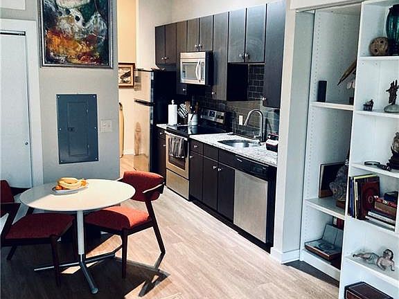 Studio Unit. High Ceilings. Great location on 2nd floor near the amenity center, gym, pool, elevator and stairs. Includes murphy bed. No Smoking allowed. One Pet allowed. Designated Parking Spot.