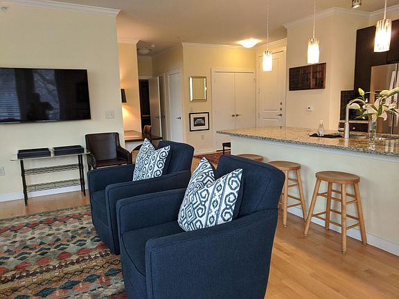 FULLY FURNISHED Voted Best of the Best-FIRST PLACE (Best downtown living-residential) Zilkr on the Park Condominiums our condo is one of a few units that has a designated area for dining table (great for projects) and chairs (6) in addition to 4 counter stools at island VERY SPACIOUS 1bedroom/1bathroom condo available June 1. (first/last month's rent, security deposit due with signed lease) 6 month minimum CORNER UNIT sunny location, lots of windows (10) and a nice balcony INCLUDES 1 GATED GARAGE SPACE 118" X 180" and locked cage for bicycles and paddle boards. Poss. 2nd gated garage space if avail. is an additional $100 per mo. if needed. Professionally designed Exceptional opportunity to rent a pied-a-terre in Austin's best area Ideal for extended stay hotel alternative or corporate housing Central Air Conditioning New kitchen with granite, stainless steel, dishwasher, garbage disposal Sink in LARGE 115" X 42" ISLAND looking out over living area & condo's corner windows IN-UNIT STACK WASHER DRIER LARGE WALK-IN SHOWER (58" X 40 3/4") LARGE WALK-IN M.B. CLOSET (6'9" X 10') 2" white venetian blinds on all 10 windows 9-foot ceilings with CROWN MOLDING in every room Modern ceiling fans, track & pendant lighting Maple HARDWOOD floors throughout (not 1/8" plastic made to look like wood) Leather sofa (not vinyl) Comfortable reading chair with down cushions Two upholstered swivel armchairs that can face any direction desired (great when watching TV able to turn chair to talk to someone in kitchen or towards balcony) Desk area 73" W X 26" D with great lighting and leather chair Wall mounted flat-panel 55" flat panel TV Includes utilities & AT&T Fiber Linens and housewares provided (mostly Crate & Barrel) Secure entrance and monitoring NOTE: Great unit for it's privacy ..stairway to street on one side (easy to exit bldg..) and storage rooms on the other side (no neighbors on either side) Great location in AUSTIN CITY LIMITS (ACL) . right in the middle of it all. (Basically, it is a matter of whether you want downtown Austin with nature around you (south of the river, Zilker Park) or if you prefer downtown Austin as a concrete jungle (north of the river). WALK TO: (First, it doesn't get any better than having Zilker Park at your doorstep) Within 1mile Whole Food Market & Trader Joes (2 blocks to Zach Theatre) A short walk to the heart of the city Great restaurants and shopping Food trucks of all kinds 1 block away for a quick bite with "Picnic Area) On Ladybird Lake (the Colorado River) for walking, running, bike path or kayaking LUXURY AMENITIES IN BLDG: Rooftop pool, sun deck and poolside barbeque grill Fireside lounge/party room/billiard table High-tech business and conference center Fitness center Expansive landscaped grounds surrounded by lake waters and gorgeous greenbelts just outside your door! NO SMOKING & NO PETS Call or text owner (who is not a broker NO FEE) There is a stairway next to our condo that is very convenient when getting an Uber on the Sterzing Street side of the building or walking over to Whole Food Market/Trader Joe's. On the other side of our condo entrance there are storage rooms which means this condo is very private. Because it is a corner unit, this unit feels light, open and airy..... very SPACIOUS compared to other units in the building!