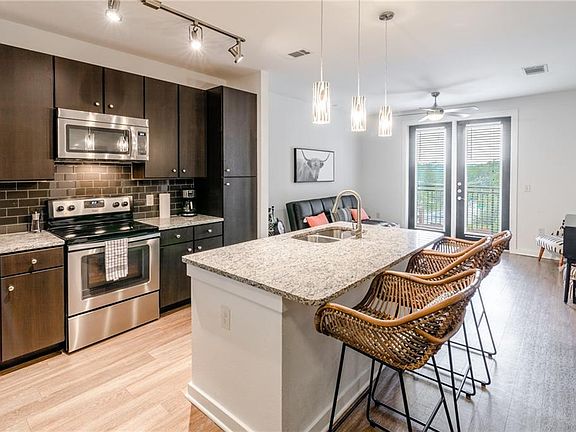 Top Floor Penthouse 1bedroom 1bath condo with views overlooking the pool and Zilker Park! Large master bathroom with dual vanity sinks and large soaking tub. Huge Walk In Closet and multiple extra closets for storage. Available furnished or unfurnished. Reserved garage parking spot, water/sewer/garbage/trash all included in the HOA. Building amenities include a large gym, pool, bbq grill, firepit, owners lounge with tv/internet, pool table, coffee bar!