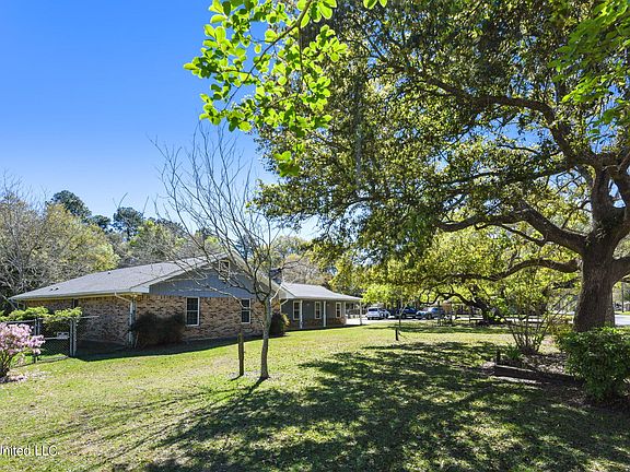 Thoughtfully built and well cared for home right in the center of Ocean Springs! This home sits on 4 lots giving you plenty of room to spread out and enjoy your home. The home boasts a 2 year old roof with architectural shingles, high ceilings in the living area, a spacious kitchen, bedrooms with walk in closets, a double vanity and jacuzzi tub in the primary bathroom, updated double pane windows, fresh paint throughout the entire interior, whole house vacuum system, plumbing in place for a bar in the living room, fireplace with fans and a warmer vent, all tile throughout, all windows have hurricane shutters as well as the exterior doors. Three outbuildings including a detached garage with the potential to create a studio on the South side, an entertainment room previously used for crawfish boils but could be used for storage, and a workshop with roll up doors and attached carport. Electric fences surround the property for easy in/out access. House is ready for a generator and the owner has a 550ft deep well should the new owner want to use a well. Several other thoughtful upgrades are placed throughout the home. You will have to see it to appreciate it. Assumable flood policy at only $780 available. Right down the street from Da Bayou, entertainment, schools, and shopping.