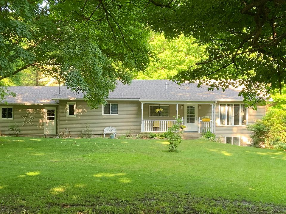 Gorgeous ranch with open floor plan hosting laminate floors and quartz countertops with island/breakfast bar that faces 12 acres of woods! Even comes with a couple of deer blinds. One gas burning fireplace in living room with small nursery room or office. Master bedroom with master bathroom including a clawfoot soaking tub. Finished basement with plenty of storage. Main floor laundry. Attached garage. And that's not all ... it also has a 32 x 28 pole barn to house all the toys! Come take alook... this one won't last long!
