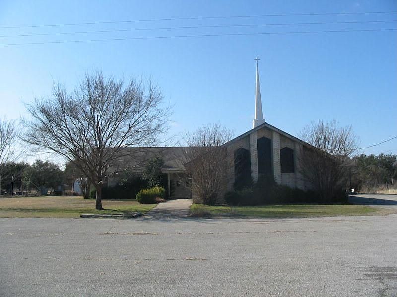 Sanctuary has pretty stained glass windows. Nursery, 2 classrooms (reception room has rollout dividers to make additional classrooms if needed), kitchen & dining hall, 2 baths. Separate fenced area previously used for paintball field.