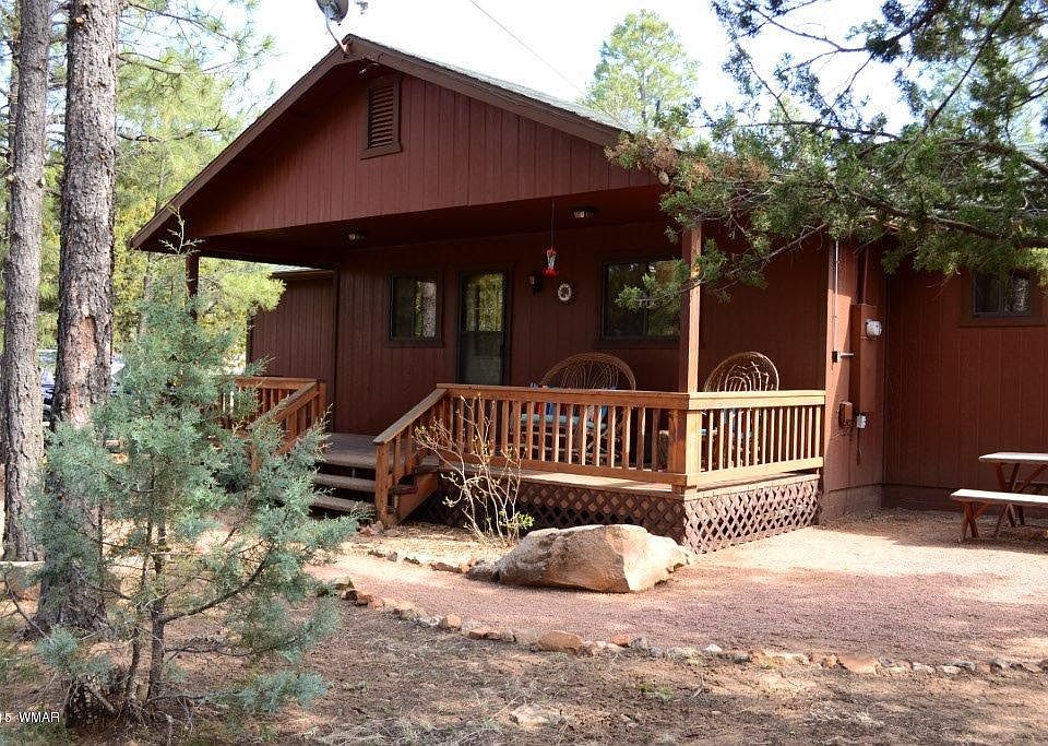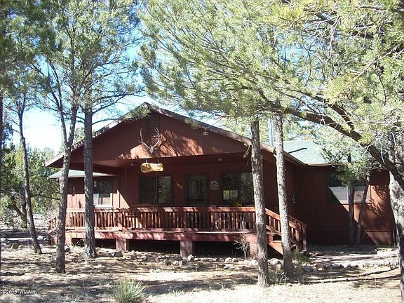 Super maintained 2 bedroom, 2 bath cabin in the pines. Warm decorator paint touches, wood trim plus a woodstove to give it that cabin feel. Large open floorplan can accommodate extra sleeping for guests and central gas furnace for winter enjoyment too. Spacious 1/3 acre lot in a site built homes only subdivision, corner lot for added roomy feel, covered decks for relaxing in the pines and a shed for workshop or toys. Easy access on county maintained road make it a great cabin for weekend or year round use.