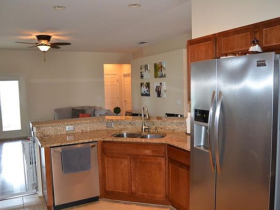 Check out this fabulous four bedroom, three bath home available in beautiful Wind Meadows! First you will notice the nicely landscaped lawn. As you enter the home, you will notice the spacious dining room and living room combo. An excellent place for get together's! Plantation shutters on most windows. The kitchen is located in the center of the home and features granite counter tops and a breakfast bar. The inside utility room has cabinets for your cleaning supplies. The kitchen opens up to the family room. Split bedroom plan. The master bedroom has french doors that open up to the spacious covered/screened-in lanai. Master bath features a garden tub with jets, separate shower, and dual sinks with granite counter tops. Did I mention this home is neat as a pin and move-in ready??? Corner lot. The garage floor has been sealed and really dresses up the garage. Schedule your appointment to view this fabulous home today!!!