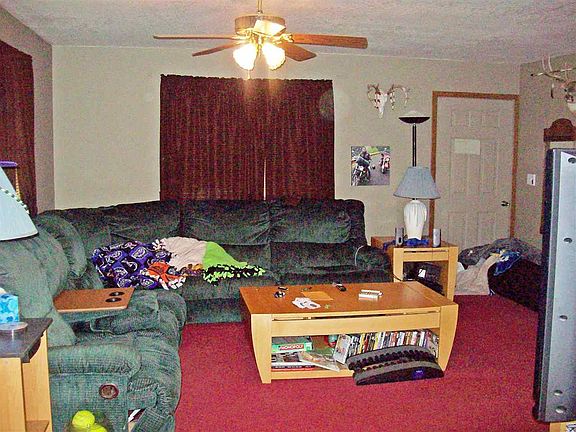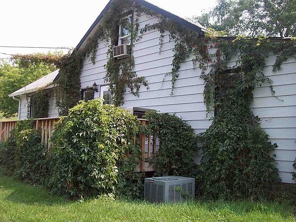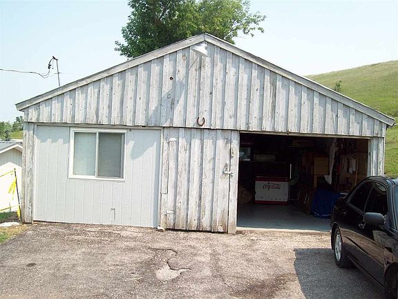 Property has 24 x 40 detached garage with 220 electricial service, cement floor. Seller has done some remodeling in kitchen and bathroom. Seller in past has had tent camping during rally and will remove shower stalls and bathroom in addition in yard. Home currently rented. Basement walls are dirt. Comfortable little home.