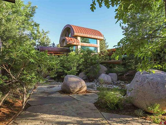 La Plata Canyon Ranch, located at the base of the majestic La Plata mountains on the La Plata River, is a stunning 15-minute drive west of historic downtown Durango. The property consists of 262 acres (4- separately deeded parcels), with roughly 3000 ft of the La Plata River. There are several improvements on this property including the main residence built in 2003 and designed by acclaimed architect, Jon Pomeroy. The home consists of 7062 SF, 4 bedroom, 5 bath, & a 3-car garage. There is a 3312 SF equipment barn/shop and 4-stall horse barn. The ranch has multiple ponds, an impressive stretch of river corridor, and extensive landscaping coupled with the scenic forest and lush river grounds. The improved fishery (ponds & river) provides for great experiences & excellent hunting can be found on the ranch as well as direct access to hundreds of thousands of acres of San Juan National Forest. Overlooking the La Plata river & dramatic vistas of the surrounding peaks & gentle vistas, the design combines cedar logs, glass, rock, steel, & sandstone. Upon arrival at the strategically placed gated entry, the views will immediately grab your attention. The paved drive leads you to the home’s courtyard with awe-inspiring landscaping featuring granite boulders (reclaimed from the La Plata County fairgrounds), berms planted with native grasses, trees, & shrubbery. The attention to detail is paramount before ever stepping foot into the residence. Unlike, many mountain ranches, La Plata Canyon Ranch enjoys complete paved access & is easily accessibility to countless recreation opportunities & city conveniences alike. Skiing can be found within minutes from the ranch at the quaint Hesperus Ski Area & fine dining at the Kennebec Café. The varying terrain allows for a plethora of wildlife including roving elk herds, deer, hawks & bald eagles. The property is fenced and cross-fenced, suitable for horses, cattle, goats or other livestock. Elevation 8,400 feet. Taxes are exceptional low due to ag-status. THE HOUSE. The residence is discretely set back off of County Road 124. Upon entering the stately & welcoming gated entrance, the residence is approached through the paved drive that meanders through the natural terrain of the high mountains and lined with introduced foliage. Inside, the interior was designed to perfectly complement its setting. A stately steel & glass front door set the stage for this unique masterpiece. Off of the entry, the home media room featuring built-in shelving and fireplace. The north wing of the home is accessed by a gallery leading to the primary suite & two guest suites. The gallery is enhanced with two atriums. Guest suite #3 is located on the second floor & is reminiscent of a tree house. All bedrooms are en suite & have separate thermostats to keep guests comfortable. The primary suite is on the far north side of the house complete with water feature, ample closet/dressing room, large soaking tub, steam shower, & double vanity. The laundry room is conveniently located on this side of the house. Flagstone floors are met with walls of glass & exposed log beams. Solid cherry doors can be found throughout the home, 20’ ceilings & tinted glass throughout eliminating the need for window coverings. The formal living room is circular showcasing the incredible surroundings. The stonework juxtaposition the walls of glass & mammoth fireplace. This is the centerpiece of the home with the dining & kitchen flanked to the south by a breezeway with access to the observation deck. The kitchen is equipped with Sub Zero refrigerator, Viking six-burner range with griddle & double ovens. The outdoor living spaces features a sunken outdoor fire pit and kitchen equipped with double grills, two cooktops, and warming drawer. This is a great place for family and friends to gather under the stars. Furnishings/equipment are available under separate negotiation. Don't miss the 3D tour and drone video!