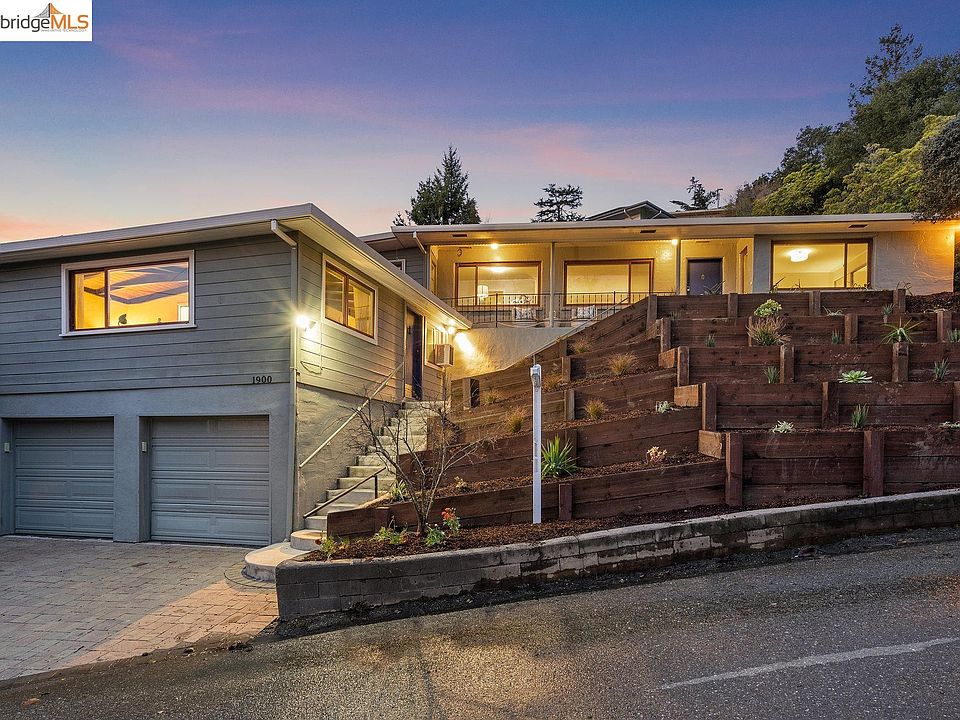 Nestled on a quiet, winding, road just minutes down the "Montclair Steps" to Montclair Village sits this wonderful, cared for home. Having no home directly across from you allows for a unique and stunning view of Lake Merritt, Alameda, SF Bay & Mt. Tam. You will instantly have your breath taken away when you gaze out the oversized picture windows throughout the home. A thoughtfully designed single level home, you enter a living room perfectly situated to take in the view. Then pass by an updated kitchen with views of the outdoor patio and gardens, and then to the star of the home, a beautiful sunny family/dining room with rust brown retro fireplace surrounded with windows to take in the marvelous views. The bedrooms are all close to each other and they include one w/ensuite, one with garden views, and one with Bay views. A gorgeous updated retro full bath round out the main living space. Multiple doors to the wonderfully landscaped backyard and patios is an entertainers dream. There have been known to be as many as a hundred friends at a time enjoying parties here throughout the years. Above the full garage sits a wonderful studio with laundry and a full kitchen. Exposed beams and a spectacular view finish out this wonderful bonus space.