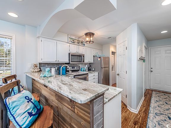 WOW, that is the best word to describe this stunning 2BR/2BA first-floor, end unit located in the tranquil community of Tilghman Shores in North Myrtle Beach. The current owner renovated the unit into her perfect beach getaway and now it can be yours. This is truly one of those units that you must go see to capture all the beauty that the condo has to offer. You will immediately notice all the upgrades with the luxury vinyl plank flooring, freshly painted kitchen cabinets, new granite countertops, new stainless appliances, new washer/dryer, and light fixtures. You will appreciate that even the popcorn ceilings have been removed and the ship-lap wall that was added to the guest bedroom provides more of that coastal feel. The condo is being sold fully furnished and turn-key for you to move right in. The HVAC was replaced in June of 2023. The building sits on a pond with a fountain, adding to the peaceful feeling of sitting on the large screen porch, and is conveniently located next to the pool. Across from the front door, you will find an extra large storage unit for all the toys needed for your day at the beach. Location is always key, you will find yourself right in the middle of what North Myrtle Beach has to offer from the beach to shopping, restaurants, and Main Street where all the action is. So much to explore, call your agent today to make this all a reality!