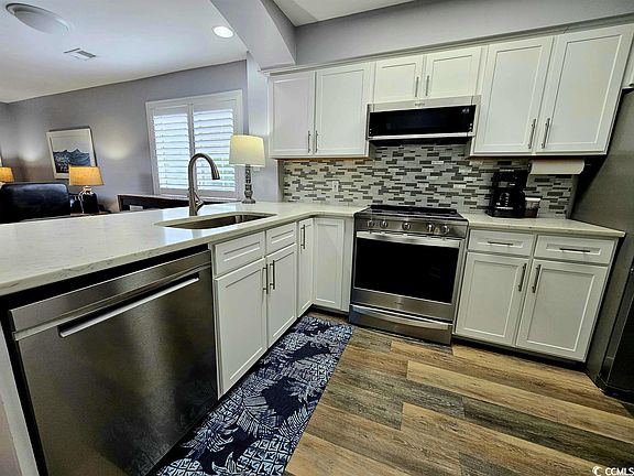 This gorgeous 2 bedroom/2bath corner unit is fully upgraded to use as your primary residence, second home, or to rent out. It's outfitted with plantation shutters, LVP flooring throughout, smooth ceilings, designer lighting, quartz countertops and more. Stainless steel appliances in kitchen including: stove, refrigerator, microwave and dishwasher. Stackable washer/dryer. Seller has decorated with all new upscale furnishings in 2021. You'll love the attention to detail this condo has wall-to-wall. The screened porch overlooks the pool and grill area. Access from both the living room AND primary suite. HVAC is under 2 years old. Electric charging station for vehicles. This villa is located just two blocks from the ocean, right around the corner from Sea Mountain Highway, and a short drive to dining, entertainment, shopping and more...all while tucked away in it's serene little neighborhood. You won't find another condo like this one anywhere on the beach.