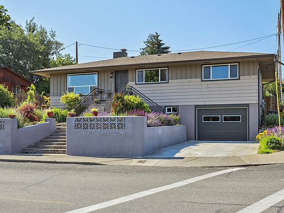 Charming Mid-Century Gem with Stunning Views! This extensively renovated 3 bed, 2.5 bath mid-century home blends classic charm with modern updates. Enjoy a spacious living room with picture windows, laminate flooring, and sweeping mountain and river views. The main level features a large, open kitchen with ample cupboard space, three bedrooms, and 1.5 baths. The lower level offers a large family room, bonus room, utility room, and a full bath—ideal for flexible living. Outside, lush flower and rock gardens surround the home, highlighted by Japanese maples in front and back, with a partial drip system in front and partial in the rear. Extra parking in back doubles as a patio space. Move-in ready and full of character!