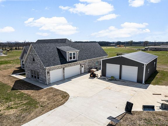 This stunning home for sale in Pryor, OK, sits on a spacious 2.28 acres, offering plenty of room to spread out and enjoy the serene Oklahoma countryside. The 4 bedroom, 3.5 bathroom home features a three-car garage, an office, and an upstairs bonus room with an open floor plan, perfect for entertaining and relaxation. The house features granite countertops and soft-close doors and drawers throughout the entire home. Additionally, the house boasts a whole-house water filtration system, foam insulation, tankless water heaters, and an HVAC system with propane backup. The alarm system and RING doorbell add an extra layer of security and peace of mind. In addition to the main home, the property includes an impressive 30X50 foam-insulated shop with a mini-split and a loft, providing plenty of space for storage or a workshop. The foam insulation ensures energy efficiency, making it the perfect space for any hobby or work. Outdoors, the property boasts a stunning inground saltwater pool with a heater & 6 ft sun ledge, providing the perfect place to cool off during the hot summers. The backyard is fully fenced with a separate fence around the pool, ensuring safety and peace of mind for your family. Overall, this move-in ready home is perfect for those who enjoy a modern and spacious living space with plenty of outdoor amenities to enjoy. The property's spacious lot provides ample room for entertaining and relaxing, while the additional shop provides plenty of storage space or workshop. Located in Pryor, OK, this home is situated in a peaceful and private area, away from the hustle and bustle of the city. However, it is still conveniently located near major roads and highways, making it easy to commute to work or school. Don't miss your chance to make this beautiful property your own !!!