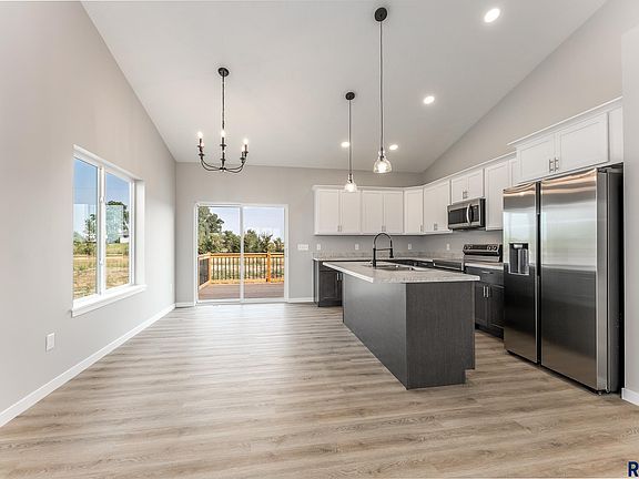 Fabulous new construction in one of Sioux Falls' newest developments. People who live here say it feels like living in a small town, just on the edge of town. The space is in this home is amazing as it is full open concept living, dining and kitchen space with vaulted ceilings. Bedrooms are tucked away nicely on the other side of the house, with a very nice master that includes a double vanity for plenty of space. Laundry on your main floor keeps life simple. Very nice deck off the back that is peaceful to relax on and feel like you're in the country with no backyard neighbors.