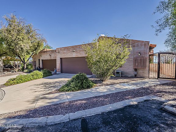 One of the Best Lots with Stunning Mountain and City Views in Foothills Ridge!! This is an amazing premium corner lot that has no side neighbors. Enter through a custom wrought iron door into soaring ceilings with exposed wood beams and skylights that flood the home with natural light.The kitchen features upgraded matte appliances, pull-out drawers, and a breakfast bar. The spacious primary suite has panoramic city views, wood beams, a cozy fireplace, rolling security shutters and a custom Classy Closets walk-in. The second bedroom includes a built-in Murphy bed, while the third offers a California Closets desk. Perfect for a home office.Recent upgrades include a brand-new Trane HVAC system, Rinnai tankless water heater, and a split A/C unit in the garage. Located just minutes from La Encantada and walking distance to the Rillito River and high end stores and restaurants. The community provides ease of living with HOA coverage of front landscaping, trash service, plus access to a pool, tennis, and pickleball.