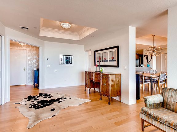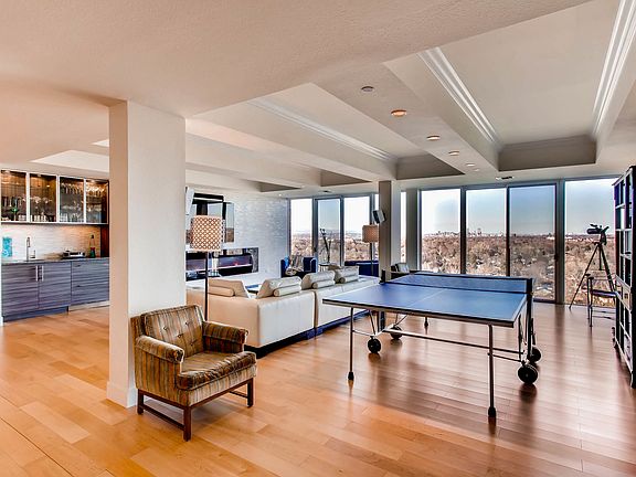 Stunning, sophisticated, inviting 14th floor unit. Spectacular city and mountain views as entire wall of Great Room is floor to ceiling windows. Maple floors, eight foot modern horizontal fireplace with attached full wet bar. Open, spacious. Up to date sleek kitchen with Subzeros, Asko and Thermador appliances and available eating space. Formal dining room. Master Bedroom also has floor to ceiling windows, attached five piece bath and large walk-in closet. Second bedroom could be master or office with another five piece bath. Large laundry room includes Asko appliances. Two parking spaces and one large storage with interior cedar closet. All this sits on 7.5 acres of lush landscaping, hundreds of trees, ponds and waterfalls. Fitness centers included indoor/outdoor pool, jacuzzi tub, fitness equipment, ping pong, pool, steam rooms and racquetball courts. Tennis court also on property. There are party rooms, hobby room and guest suites for overnight guests. NO PETS!