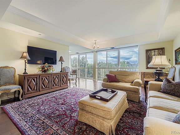 Welcome home to this updated, beautifully appointed SE corner unit with two bedrooms/two full baths. Floor to ceiling windows in living Room and primary bedroom, all with Hunter Douglas motorized shades. Warm wood 42" cabinets, stainless double sink, granite counters, Bosch range, upper microwave and eating space included in kitchen. Refrigerator/washer/dryer can be purchased. Kitchen has pass through window to the dining room, which brings in light from the south facing windows. Large dining area with nice lighting fixture and well-lit serving counter. Spacious living room with streaming sunlight from the windows that feature Pikes Peak and other mountain ranges as well as manicured acreage with trees and pond. Peaceful and inspiring views. Ensuite primary bedroom includes large walk-in closet and updated five piece bath, clawfoot tub, stunning shower and double vanity. Secondary bedroom also has fully remodeled bath. This bedroom opens to a niche and two sides of floor to ceiling windows. Stunning views. Laundry room has full-sized hookups for stack washer/dryer, cabinets and pantry. Laundry room houses the electric heat pump, as your unit supplies and controls own climate and smell. The Waterford property is noteworthy acreage with hundreds of trees, ponds, waterfalls, manicured lawn, flowers, gas grills, picnic and relaxation area and well lit tennis/pickleball courts. Main building includes a Grand Salon for functions/parties as it includes bar area for serving and guest suites for rent. There is an auxiliary fitness center in main building. A large fitness center includes equipment, indoor/outdoor pool, hot tub, steam rooms, showers/lockers, pool table and table tennis. There is a party room with fireplace, which includes kitchenette. Waterford provides a magnificent living experience. Unit has a convenient parking and storage space. Driveways to the garage are heated. A front doorman is on site 24/7 to greet your guests and receive packages.