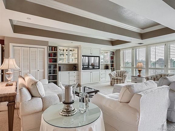 Plantation shutters, if desired. Plentiful built-ins. The Great Room is truly Great. Large dining space with a pass through to the kitchen. Kitchen is fabulous with custom white cabinetry, granite, high end appliances, eating nook and double hall closets for pantry storage. Primary bedroom faces pond, large trees, south and west mountain range. Large walk-in closet with another corresponding clothes closet. Primary bath has stunning white shower, raised vanity with granite counter and double sinks. Secondary bedroom also has floor to ceiling windows, built-in murphy bed, shelves, cabinets, desk and closet. Laundry room with cabinets accommodates full size washer/dryer. Upgraded lighting, wood moldings.