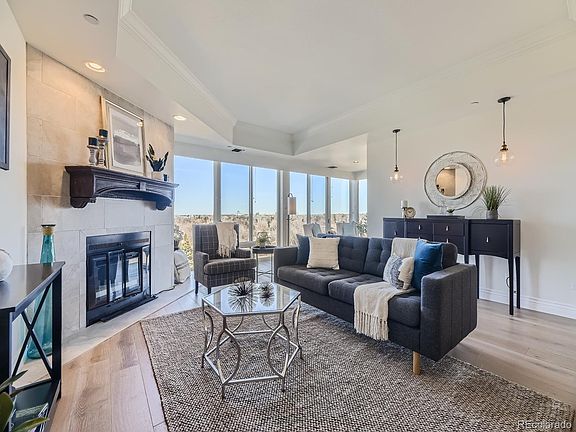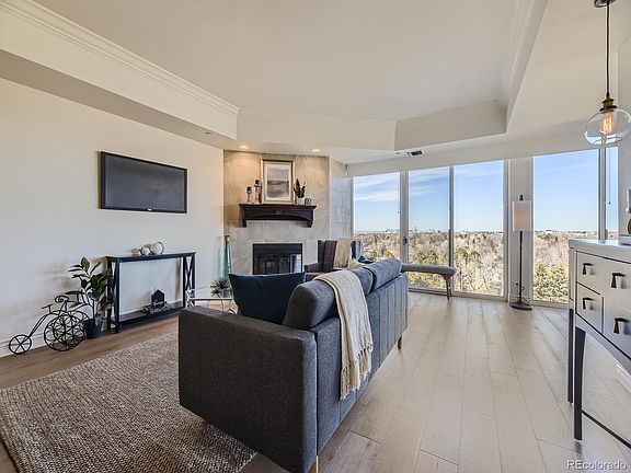 This home is truly an oasis! Rare NE corner unit, with expansive views of DTC, downtown Denver city skyline, D.U. steeple, mountains, acres of landscaping including; trees, manicured lawn and ponds, and you can hear the calming waterfall when you are sitting in your sunroom with the sliding glass doors open and a cool breeze bringing in the fresh air. This updated unit has been freshly painted and new carpet installed in primary bedroom. Over 1600 sq ft of one level, expansive living, floor to ceiling windows in a quiet location. Two bedrooms, two full baths, laundry room including washer/dryer and cabinets. The sun room is magnificent with floor to ceiling views of skyline and nature. The unit comes with two deeded parking spots #10 and #78, Storage B1 #48.