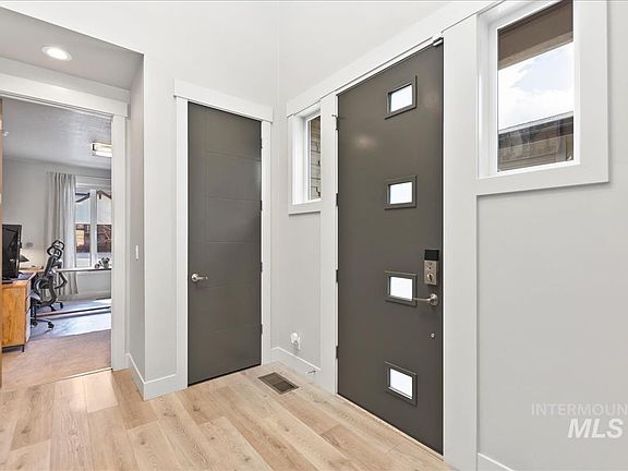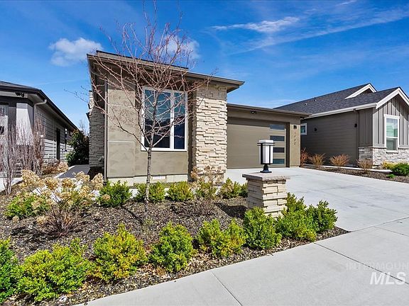 Amazing modern home built by Hammett Homes. This Bremore floor plan is sure to please, with it's open and modern look. 9' ceilings paired with 8' doors and upgraded lighting package create a warm and inviting atmosphere. The open kitchen layout and dropped floating ceiling in the dining room makes for easy entertaining and workflow. The split floor plan provides ample privacy and quiet living conditions. The Primary bedroom retreat with it's back-lit mirror and large tile walk in shower create a spa-like get away. Detail is everywhere, from the built in open shelving, to the clean lines of walls and walkways, this home is ready to please. Located in the elusive Pine 43 subdivision, close to restaurants, shopping and all that Meridian has to offer. Don't miss the opportunity to make this home YOURS!