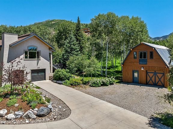 Boasting stunning mountain contemporary style, this one-of-a-kind home is perched at the top of the coveted Fish Creek Falls neighborhood. The home was remodeled and expanded in 2005 and offers amazing views of the Flattop Mountains and the Yampa Valley. The property includes a 1300 sqft post-and-beam barn with extensive storage for outdoor gear, toys, and vehicles. Enjoy an inviting living and dining area with expansive windows and a beautiful stone fireplace in the home. The focal point of the home is a chef’s kitchen equipped with a center island, a new six-burner Viking oven, stainless steel appliances, and walk-in pantry. Entertain year-round in the home’s patio and backyard oasis with a 7-person hot tub. On the main level, the primary suite is a luxurious retreat with high vaulted ceilings, a walk-in closet, beautiful hardwood floors, large bathroom with a steam shower, and separate vanities. This level includes two additional bedrooms, one with its own en-suite, a full bathroom and a conveniently located laundry room. The lower level is designed for hanging out and can serve as a guest area, or could be closed off for potential rental income space. It features a large entertainment room, a large bedroom, full bathroom, and a bonus room with a sink that could be an extra bedroom, fitness room or craft room. Throw off your snowy gear in the mudroom with built-in shelving right at the front door. There are two separate garages with one being an extra tall and deep single-car garage with passive wine storage. The property is beautifully landscaped with drip irrigation systems for all shrubs and flower beds and a mature aspen grove with a park-like setting. Constructed with stucco and masonite exterior for low maintenance and aesthetic appeal. Enjoy a country feel but just being a short trip to downtown restaurants, schools or Fish Creek Falls for sightseeing and hiking in the National Forest. Seize the chance to call this exquisite property your home!