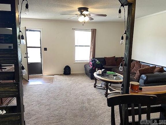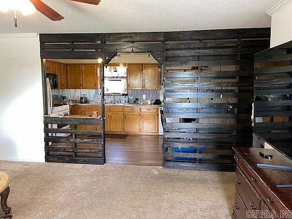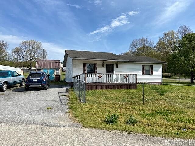 ADORABLE 988 SQ FT HOME!! This bungalow is 2 bedrooms and 1 bathroom and is 988 square feet. Nice sized kitchen and dining area with wooden bar and pipe and wooden shelving! Stove, refrigerator, microwave and dishwasher included! Barn doors on the laundry room complete with washer and dryer. Another barn door has the new water heater enclosed! Carpet and LVT on the floors. Large living room, front deck, covered back patio. 10X12 building with lofts and tool box! Huge fenced in yard. Built in 1996 on corner lot.