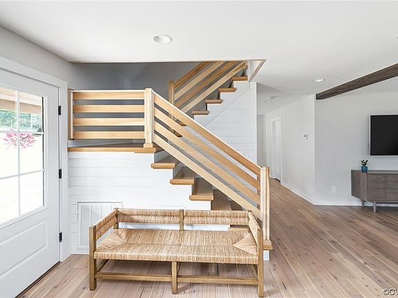 Options abound!! 1st & 2nd Floor Owner Suites, each w/ walk-in closet & bathroom. Flexible laundry as well, w/ hookups upstairs & down! (1st floor area mudroom, or even make it a "pet home".) 1st floor continues w/ flex space/den & behind a barn door, the perfect space for an office. Upstairs laundry room w/skylight, an extra space that could be a kids play area or book nook, 2 more bedrooms w/ Jack-and-Jill bathroom, & Owner's Suite w/ en-suite bath, huge dressing room w/double window & built-in shelving. Recessed lights throughout. Exit Living Rm or Kitchen to oversized covered back deck & enjoy the views. Located on 5+ cleared acres w/ new concrete Saltwater Pool, large 2 car detached barn-style garage w/ extra storage & workroom. Plus - Car Charging Station!