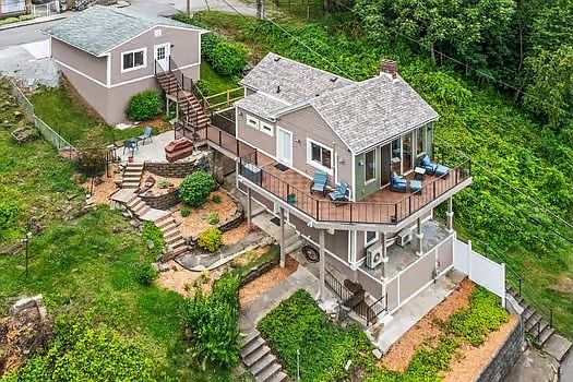 Hovering near the clouds, this magnificent home is a perfect package of beauty and efficiency. Coming from the two-car garage and onto the wrap around porch you can enjoy the property around you on either side. Entering the home on what I consider the main floor, you are almost immediately enveloped by the view. Luscious true hard wood floors pamper your steps and invite you to want to see more of this home. In the wintertime you will quickly appreciate the heat trickling up to your feet and warming your whole body from the ensconced hot water heat that seeps through the floors and ceiling. Additional climate control come from the three units in Living Room and bedrooms. Large Floor to ceiling Patio doors bring the outside to your eyeballs. Kitchen is outfitted with the granite Countertops, Solid maple cabinets, Six burner Jenn Air Stove and convection oven, GE Profile appliances. Roof installed May 2024. Insta Heat water heater. Read more with the pictures.